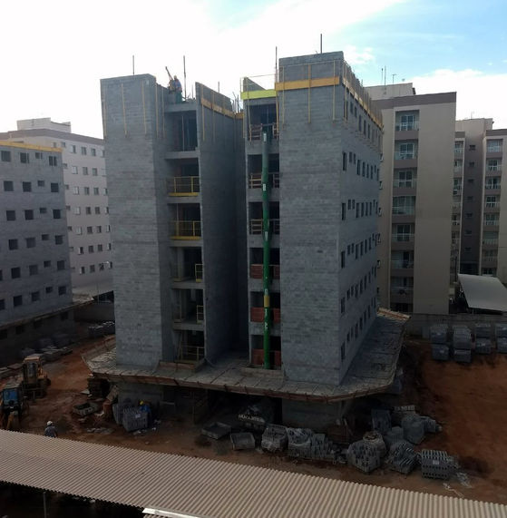 Condomínio fechado com 256 apartamentos, 8 torres com 8 andares cada.